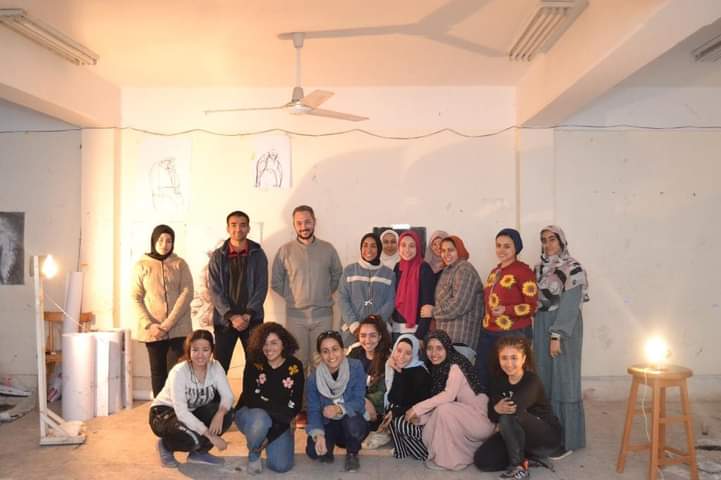 والأستاذ الدكتور احمد المنشاوي نائب رئيس الجامعة لشئون الدراسات العليا والبحوث والمشرف على كلية الفنون الجميلة ، والأستاذ الدكتور مها غانم نائب رئيس الجامعة لشئون خدمة المجتمع وتنمية البيئة