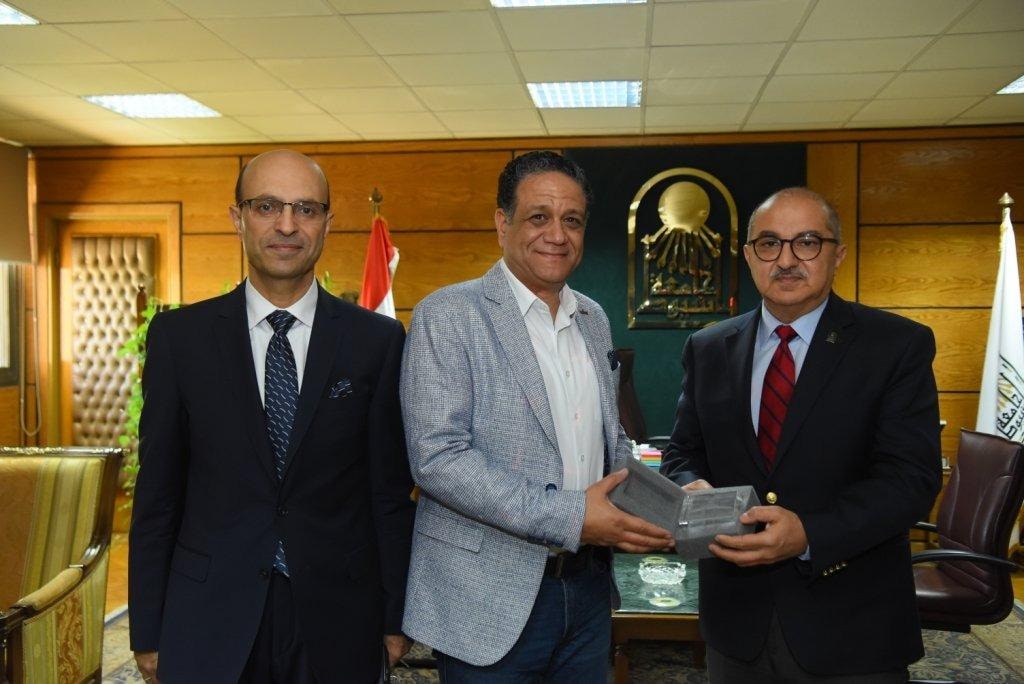 أستاذ الدكتور طارق الجمال رئيس جامعة أسيوط يستقبل لجنة قطاع الفنون و التربية الموسيقية و التي تضم الدكتورة صفية القباني نقيب الفنانين التشكيليين وعميد كلية الفنون الجميلة جامعة حلوان الأسبق الدكتور تامر عبد اللطيف الأستاذ بكلية الفنون التطبيقية بجامعة حلوان وعميد كلية الفنون التطبيقية جامعة بنى سويف السابق ، والدكتور عاطف عبد الحميد الأستاذ بكلية التربية الموسيقية بجامعة حلوان وعميد كلية التربية الموسيقية الأسبق و بحضور الدكتور أحمد المنشاوي نائب رئيس جامعة أسيوط لشئون الدراسات العليا و البحوث و المشرف على كلية الفنون الجميلة ، و الدكتور منصور المنسي مؤسس كلية الفنون الجميلة بجامعة أسيوط و عميدها الأسبق ، و الدكتور محمد ثابت بداري رئيس قسم التصوير بكلية الفنون الجميلة و عميدها السابق و الدكتورة سحر بطرس وكيل الكلية لشئون خدمة المجتمع و تنمية البيئة و الدكتور محمد عبد الحكيم و كيل الكلية لشئون التعليم و الطلاب و الدكتور محمد حلمي الحفناوى وكيل الكلية لشئون الدراسات العليا و البحوث والمشرف على قسم العمارة