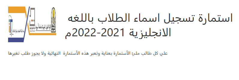 استمارة تسجيل اسماء الطلاب باللغة الانجليزية 4 أبريل 2022 https://forms.office.com/Pages/ResponsePage.aspx?id=KERFeb5NGkCyq2SlpwaeK7oLqka9LxpGtNE3-AktjPZUNU81ODFDUjRMVEYwREZYRFQzNUEwOUxLVi4u على جميع طلاب كلية الفنون الجميلة سرعة ملئ الاستمارة للاهمية