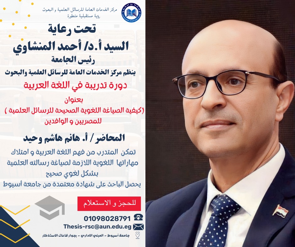 دورة تدريبية فى اللغة العربية بعنوان " كيفية الصياغة اللغوية الصحيحة للرسائل العلمية"