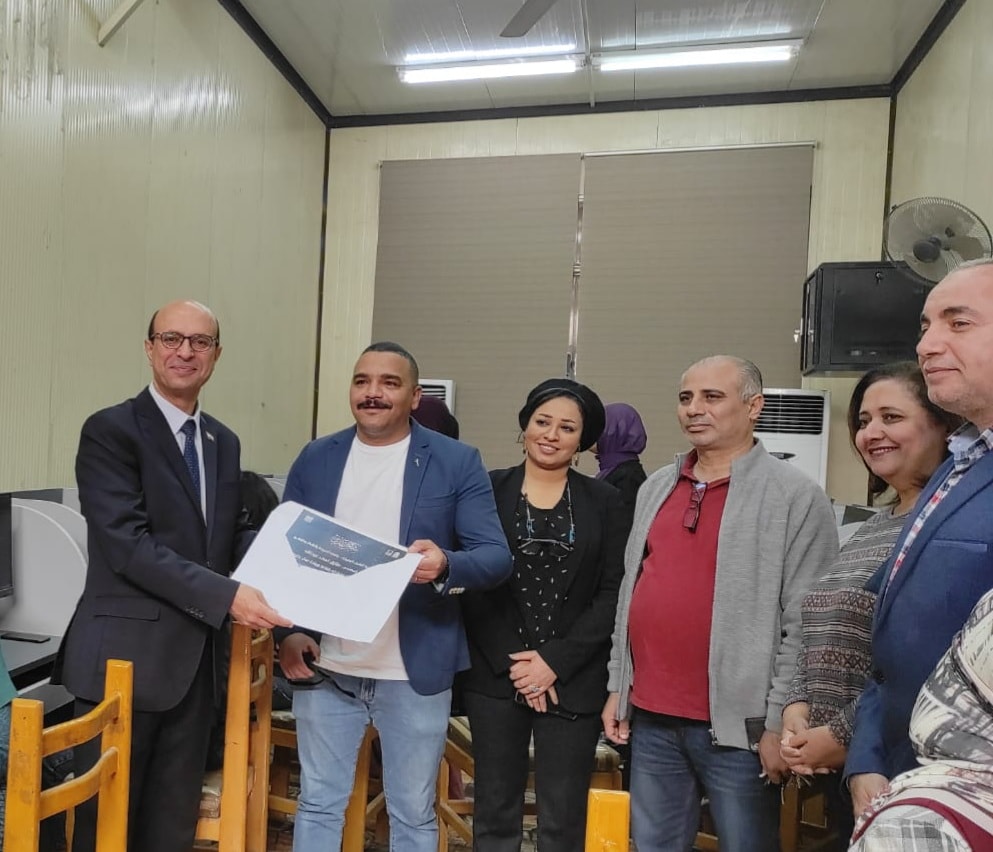 استكمال التدريب العملي للطلاب فى معمل الحاسب الآلى بالكلية كما قام الأستاذ الدكتور /أحمد المنشاوى نائب رئيس الجامعة لشئون الدراسات العليا والبحوث والمشرف على الكلية باختتام فاعليات الورشة وتقديم شهادة تقدير للمصمم المهندس /طارق عبدالله
