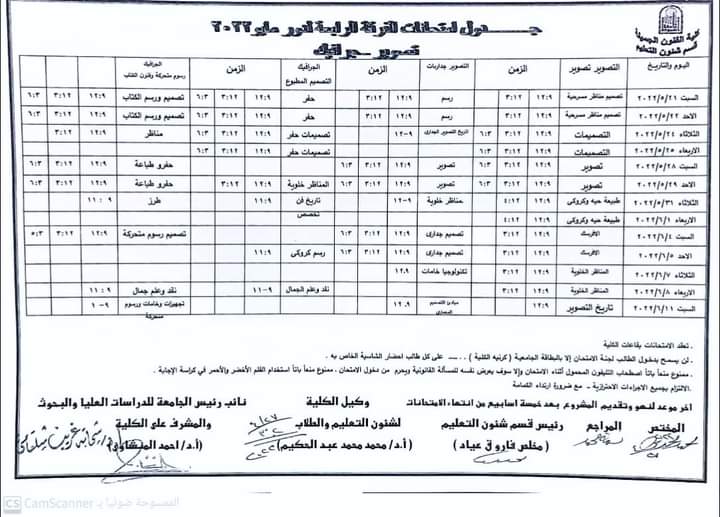 هام لطلاب الفرقةالرابعة تعديل جدول امتحانات الفرقة الرابعة (تصوير- جرافيك) للفصل الدراسي الثاني للعام الجامعي ٢٠٢٢/٢٠٢١م 4 مايو 2022