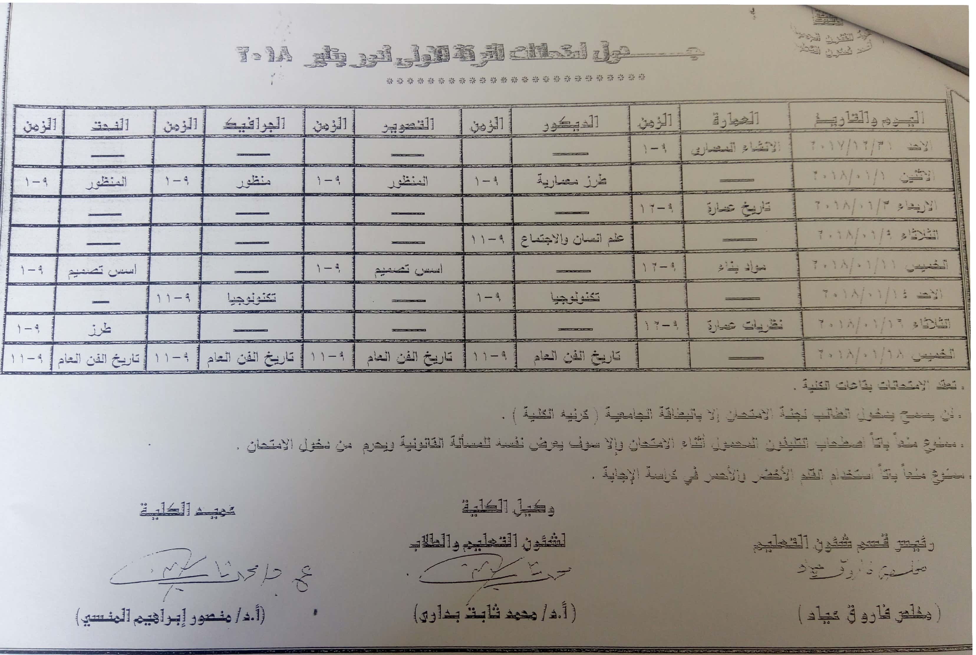 جداول امتحانات الفرقة الأولى يناير 2018