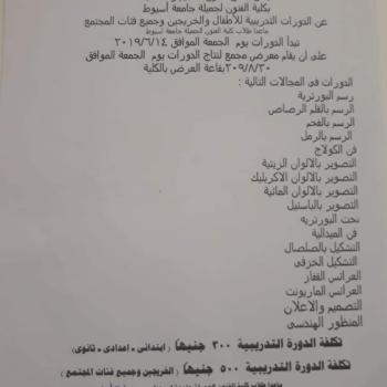 فنون جميلة أسيوط تعلن عن تنظيم دورات تدريبية فى عدد من المجالات الفنية لمختلف الأعمار
