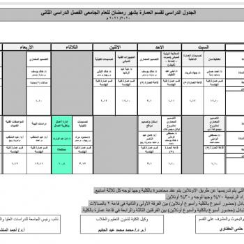 #الجدول_الدراسي لقسم العمارة للفصل الدراسي الثانى للعام الجامعى ٢٠٢١/٢٠٢٠م