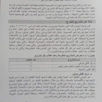 #يعلن_قسم_العمارة بكلية الفنون الجميلة عن أسماء مشاريع التخرج لأول دفعات القسم بالكلية