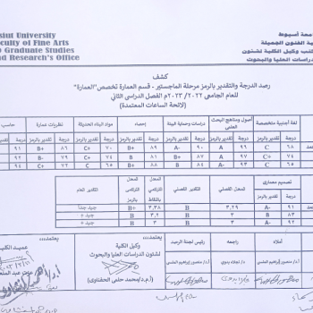 تمت بحمد الله تعالى مناقشة رسالة الدكتوراة للدارس مدرس مساعد/ هانى ثروت محمود بقسم التصوير - تصوير جدارى - بكلية الفنون الجميلة -جامعة أسيوط