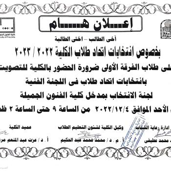 اعلان هام لطلاب الكلية الفرقة الثالثة و الرابعة