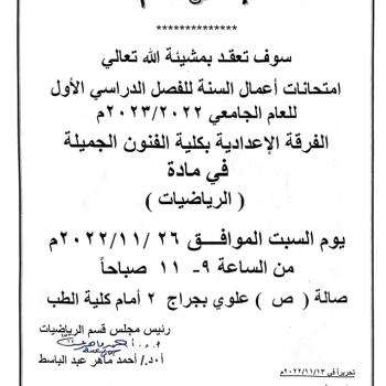 على جميع طلاب الفرقة الثالثة والفرقة الرابعة كلية الفنون الجميلة سرعة الدخول على الرابط التالى لتسجيل بيناتهم للاهمية ، مع العلم بإن فترة التسجيل تبدا من يوم الاثنين الموافق 14/11/2022 الى يوم…