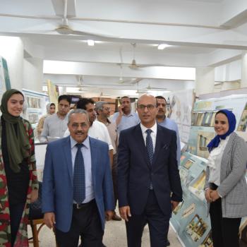 الدكتور أحمد المنشاوي نائب رئيس جامعة أسيوط لشئون الدراسات العليا والبحوث والمشرف على كلية الفنون الجميلة يستقبل أعضاء لجان تحكيم مشروع تخرج الدفعة الثانية لطلاب الفرقة الرابعة بكلية الفنون الجميلة