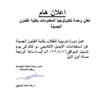 على جميع طلاب كلية الفنون الجميلة سرعة ملئ الاستمارة…