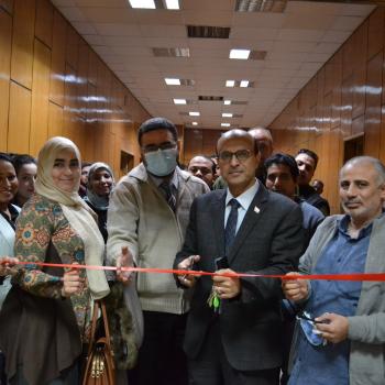 يتفقد معرض الخط العربي لأعضاء هيئة تدريس و طلاب كلية الفنون الجميلة
