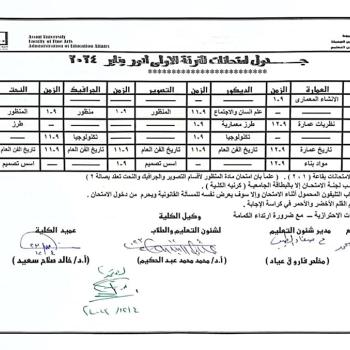 جداول اختبارات منتصف العام الجامعى ٢٠٢٣-٢٠٢٤