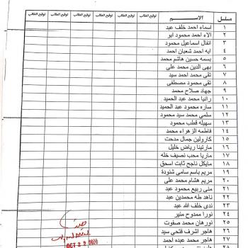 قائمة بأسماء طلاب الفرقة الاولى نحت للعام الجامعي ٢٠٢١/٢٠٢٠م