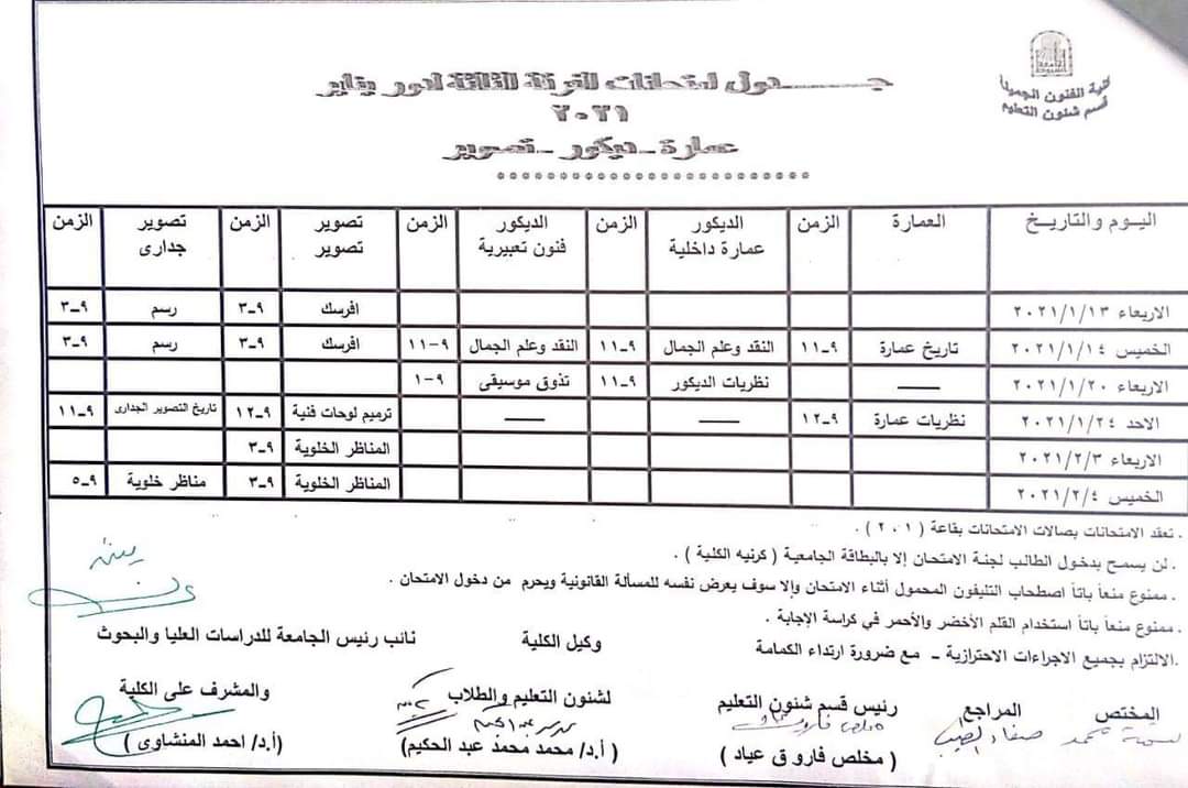 جداول_امتحانات_الفرقة_الثالثة_لدور_يناير_٢٠٢١