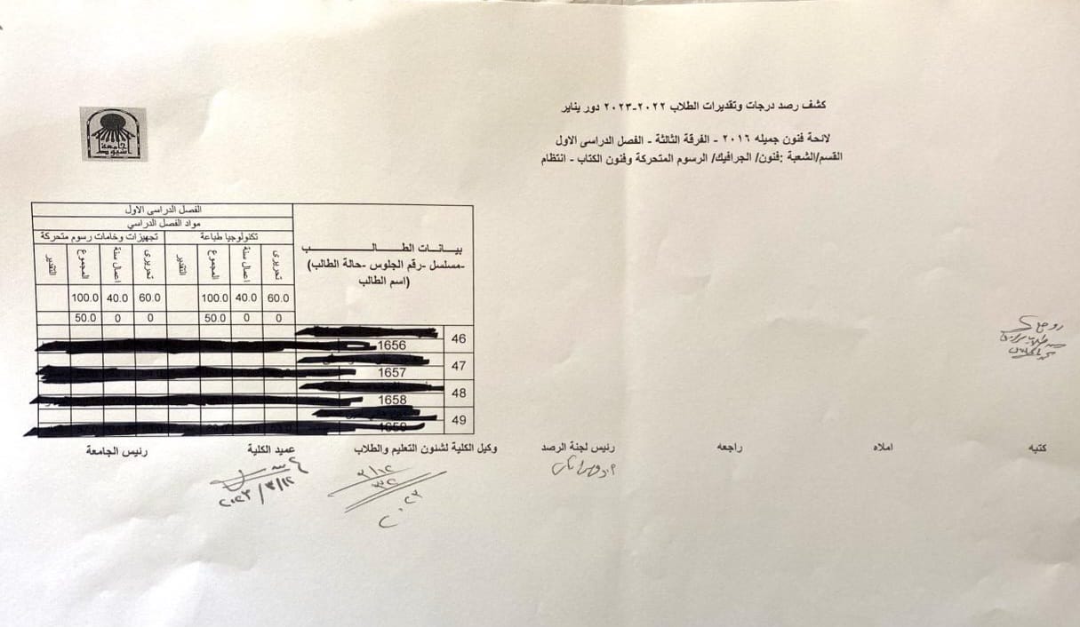 نتيجة الفصل الدراسي الأول للعام الجامعي ٢٠٢٢ - ٢٠٢٣ م الفرقة الثالثة قسم (التصوير -النحت - الجرافيك)