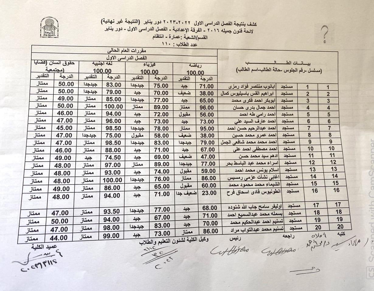 نتيجة الفصل الدراسي الأول للعام الجامعي ٢٠٢٢ - ٢٠٢٣ م الفرقة الثالثة قسم العمارة