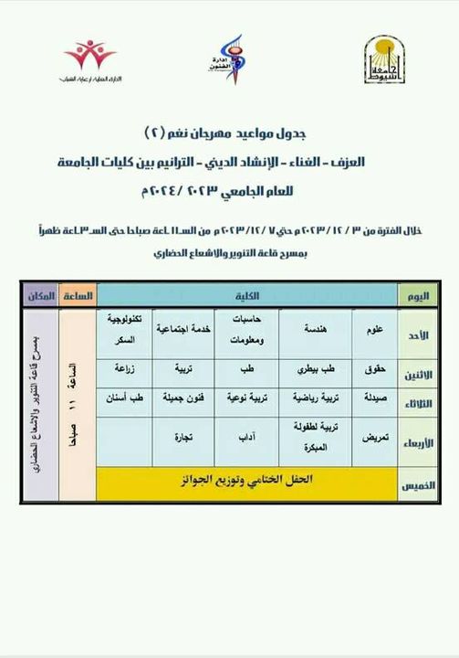 The General Administration of Youth Welfare at the University organized the period from 4-12-2023 to 7-22-2023 under the patronage of Professor Dr. Ahmed El-Minshawy, President of the University, and Professor Dr. Ahmed Abdel Mawla, Vice President of the University for Education and Student Affairs, and under the supervision of Dr. Madiha Darwish, General Coordinator of Activities. Students at the university