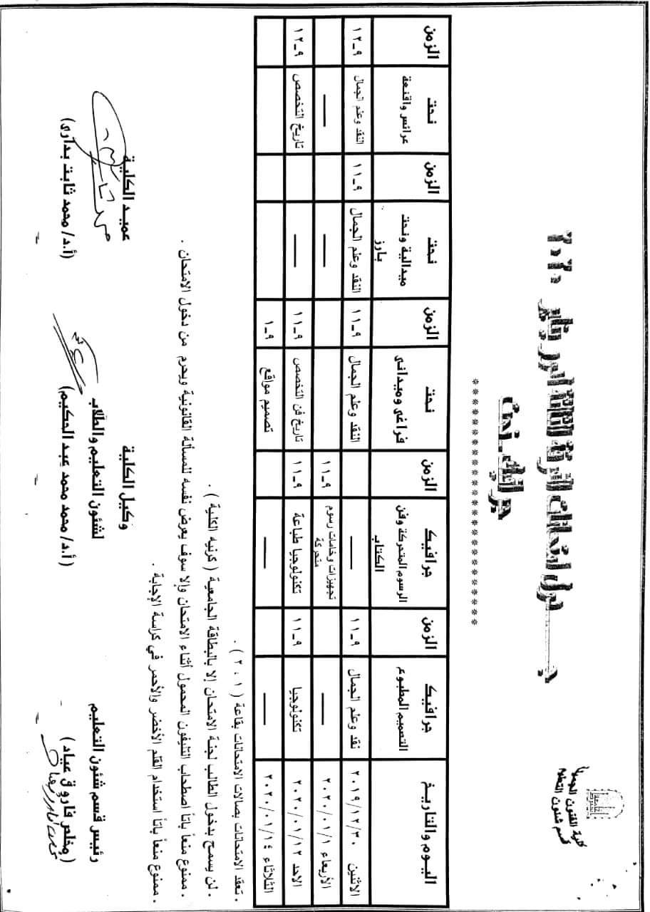 First semester exams schedules for the academic year 2019-2020 20 December 2019 First semester exams schedules for the academic year 2019-2020