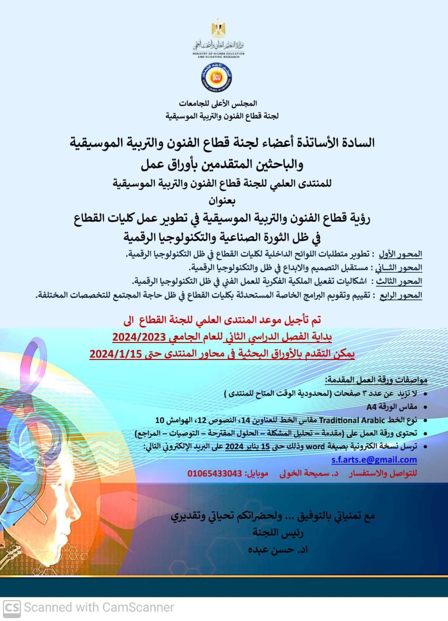 The Arts and Music Education Sector Committee announces that the date of the Scientific Forum of the Sector Committee has been postponed to the beginning of the second semester. The committee will continue to receive research contributions until 1/15/2024.