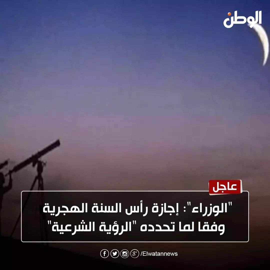 بيان رسمى صادر من مجلس الوزراء بشأن إجازة رأس السنة الهجرية:   تردد في بعض المواقع الإلكترونية وصفحات التواصل الاجتماعي أنباء تفيد بمنح الحكومة العاملين بالجهاز الإداري للدولة إجازة رأس السنة الهجرية يوم الأحد الموافق 1 سبتمبر2019، لجميع العاملين بالجهاز الإداري للدولة، ليكون بديلاً ليوم السبت الموافق 31 أغسطس 2019، وبهذا الصدد يؤكد مجلس الوزراء، أنه لا صحة لما تردد حول منح إجازة رأس السنة الهجرية يوم الأحد الموافق 1 سبتمبر 2019 بدلاً من يوم السبت الموافق 31 أغسطس 2019، وأن يوم الأحد المقبل هو يوم عمل طبيعي يؤدي فيه جميع العاملين بالدولة عملهم كالمعتاد دون أي تغيير. وفي النهاية، يناشد مجلس الوزراء المصري جميع المواطنين تحري الدقة والموضوعية ‏في نشر الأخبار والتواصل مع الجهات المعنية للتأكد قبل نشر ‏معلومات لا تستند إلى أي حقائق.    ملحوظة:  في ضوء اهتمام السيد الدكتور، مصطفى مدبولي، رئيس مجلس الوزراء بتوضيح الحقائق للمواطنين, برجاء الإبلاغ عن أي شائعات أو معلومات مغلوطة على الرقم التالي (0227927407) على مدى 24 ساعة طوال أيام الأسبوع، أو إرسالها عبر البريد الإلكتروني (rumors@idsc.net.eg) أو الاتصال على رقم بوابة الشكاوى الحكومية (16528).