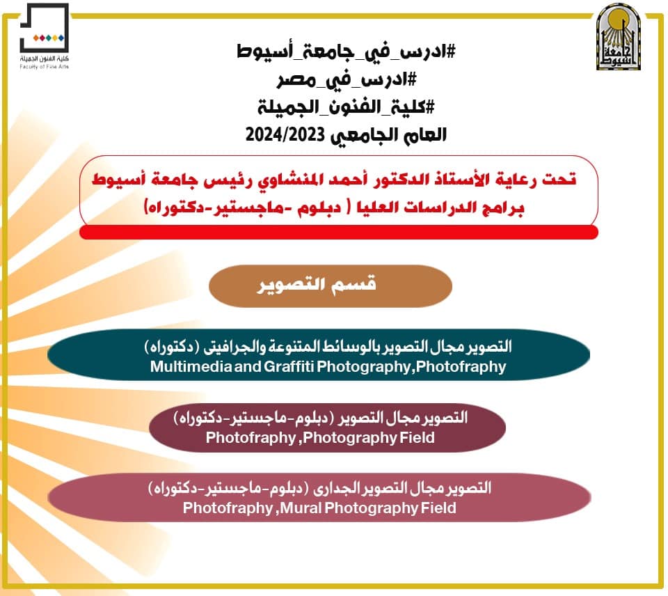 أعرف أكثر عن برامج الدراسات العليا كليات ومعاهد جامعة أسيوط كلية الفنون الجميلة ( دبلوم /ماجستير / دكتوراه) 29 يناير 2024