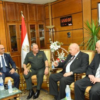 The President of Assiut University and the Commander of the Southern Military Region meet with Major General Staff Farouk Alam Al-Din Al-Ajramy on the sidelines of his participation in the university’s celebrations marking the glorious October victories a