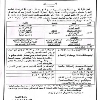 Announcement for students of the Faculty of Fine Arts - Assiut