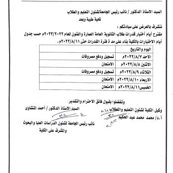 Extending the period of high school aptitude tests at the Faculty of Fine Arts for Sunday 14/8/2022