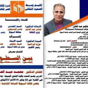 An invitation to attend an exhibition between the lines of the artist Dr. Mohamed Mohamed Abdel Hakim - a lecturer in sculpture department On Monday, 22/1/2018 Assiut Culture Palace at 8:00 pm