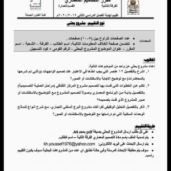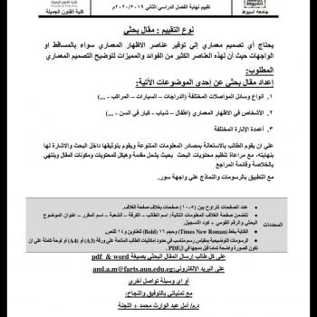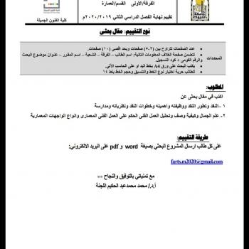 Evaluation of the end of the second semester for students of the Faculty of Fine Arts University Asyut for the academic year 2020/2019 Type of evaluation: Research project course: decorative composition band: First section: graphic