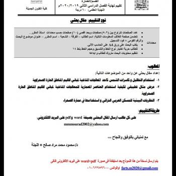 Evaluation of the end of the second semester for students of the Faculty of Fine Arts University Asyut for the academic year 2020/2019 Type of evaluation: Research project course: design band: third division:photography section:photography