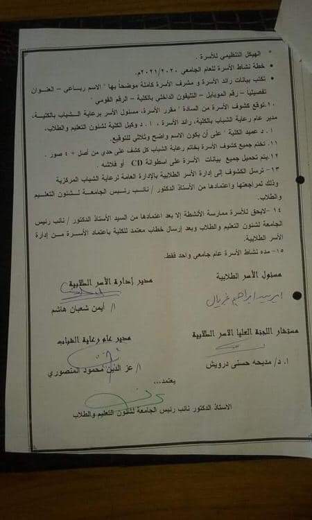 كما فوض رئيس جامعة أسيوط السادة عمداء الكليات والمعاهد بتكليف مايلزمهم من عاملين بالتواجد خلال الفترة المسائية والممتدة من الحادية عشر صباحاً وحتي السادسة مساءاً في حال احتياج الخدمة التعليمية إلي ذلك .