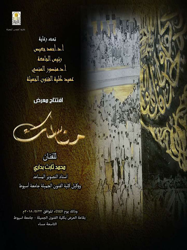 Under the patronage of Prof. Dr. Ahmed Abdo Jais President of Assiut University. And Professor Dr. Mansour Al-Mansa Dean of the Faculty of Fine ArtsThe Art Exhibition (Menasak)For the artist Dr. Mohammed Thabet Badary Vice Dean of the Faculty of Fine Arts for Education and Students AffairsOn Tuesday 22 May at the exhibition hall of the Faculty of Fine Arts