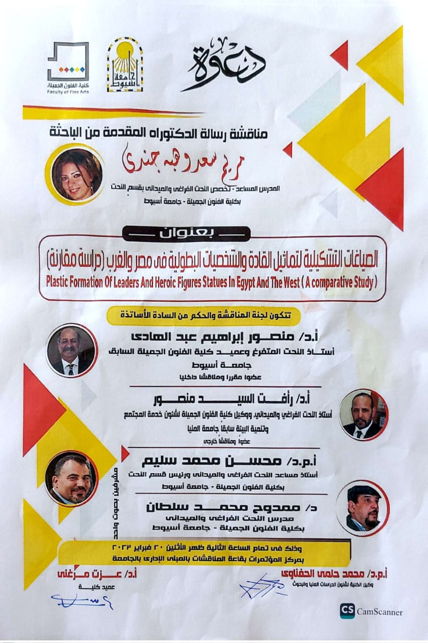 An invitation to discuss the doctoral dissertation submitted by researcher Maryam Saad Wahba Jundi 19 February 2023
