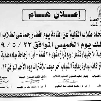 Announcement of the establishment of a collective breakfast for students of the College on Thursday, May 23, 2019