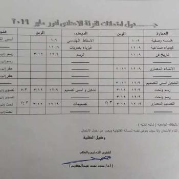Schedules of the role of May exams for the first group decoration and architecture for the academic year 2019/2018