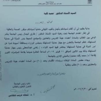 An important announcement for the students and the student union in the faculty to attend the college and go at 9:15 am on Monday, February 11, 2019 to the large conference hall in the administrative…