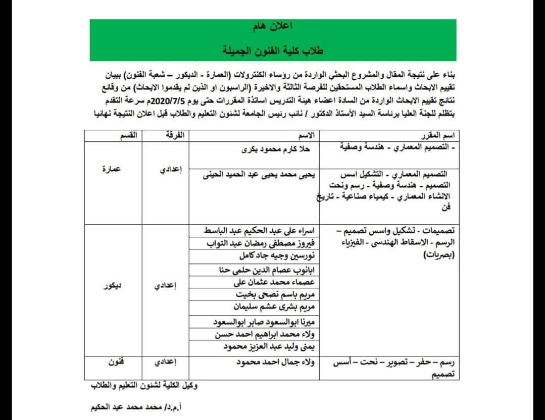 An important announcement for the students of the department of decoration