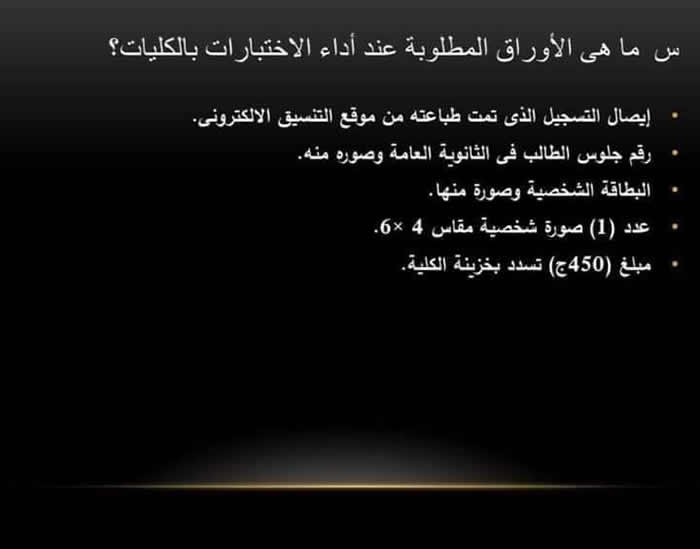 ■ الأوراق المطلوبة عند أداء الاختبارات بالكلية:-