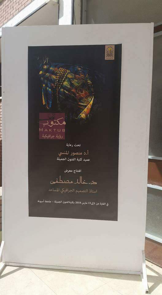 Under the patronage of Professor Dr. Ahmed Jaeis, President of Assiut University. Mansour Al-Mansa, Dean of the Faculty of Fine Arts ..A graphic vision of a written book .. For the artist Dr. Khaled Mustafa - Assistant Graphic Professor at the Faculty of Fine Arts on Thursday 1/3/2018 in the exhibition hall in the Faculty of Fine Arts.