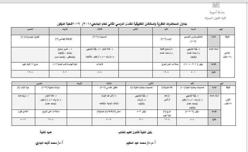 Table of lectures for the second semester Decoration Section 18 February 2019 Table of lectures for the second semester Decoration Section