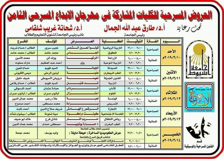 Theatrical performances of the participating colleges in the eighth theater creativity festival 7 March 2019 Theatrical performances of the participating colleges in the eighth theater creativity festival