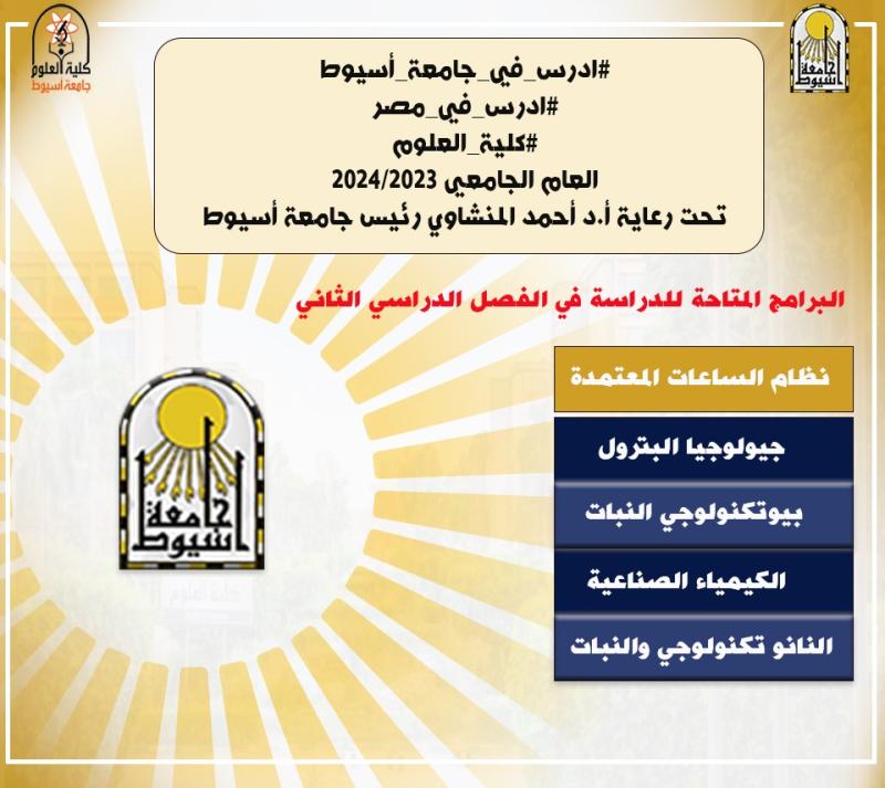 متاح الآن التقديم للدراسة من الفصل الدراسي الثاني بكلية العلوم جامعة أسيوط حتي 31/1/2024