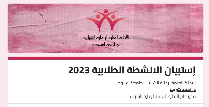 استبيان الإدارة العامة لرعاية الشباب بشأن الأنشطة الطلابية 3 يناير 2023 استبيان الإدارة العامة لرعاية الشباب بشأن الأنشطة الطلابية