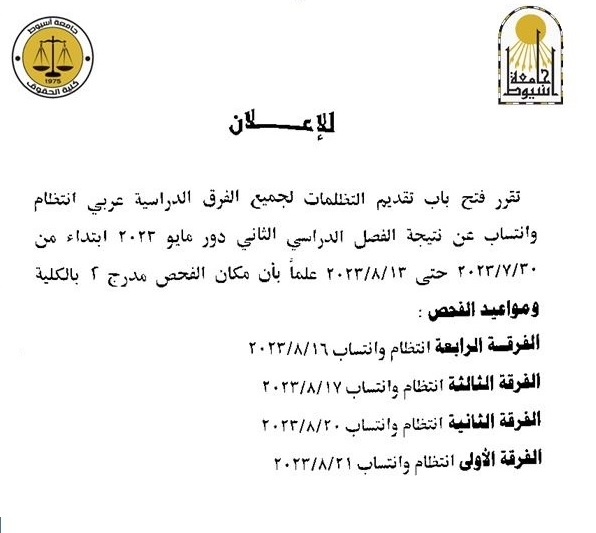 فتح باب تقديم التظلمات لجميع الفرق الدراسية عربي انتظام وانتساب