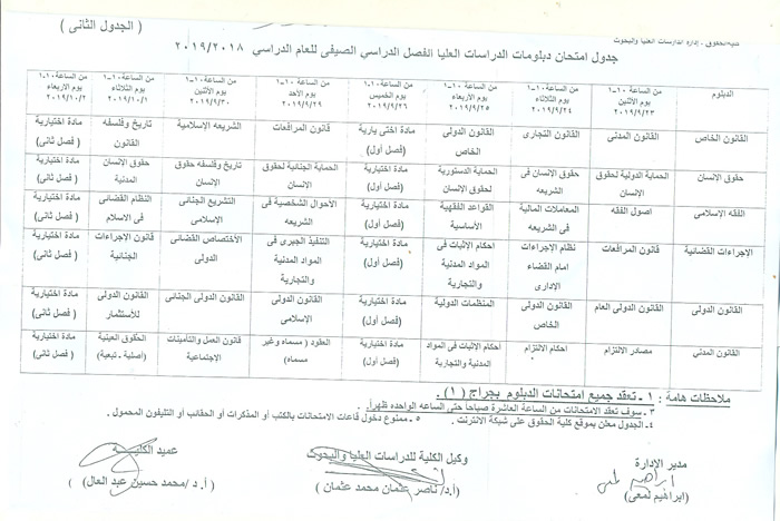 جدول امتحان دبلومات الدراسات العليا الفصل الدراسي الصيفي للعام الدراسي 2018/2019 16 سبتمبر 2019 جدول امتحان دبلومات الدراسات العليا الفصل الدراسي الصيفي للعام الدراسي 2018/2019