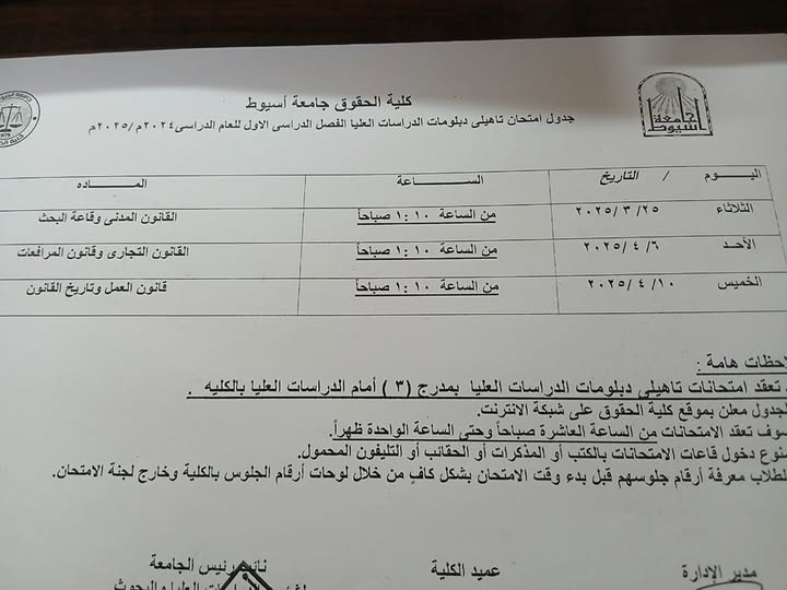 جدول امتحانات تأهيلي دبلومات الدراسات العليا