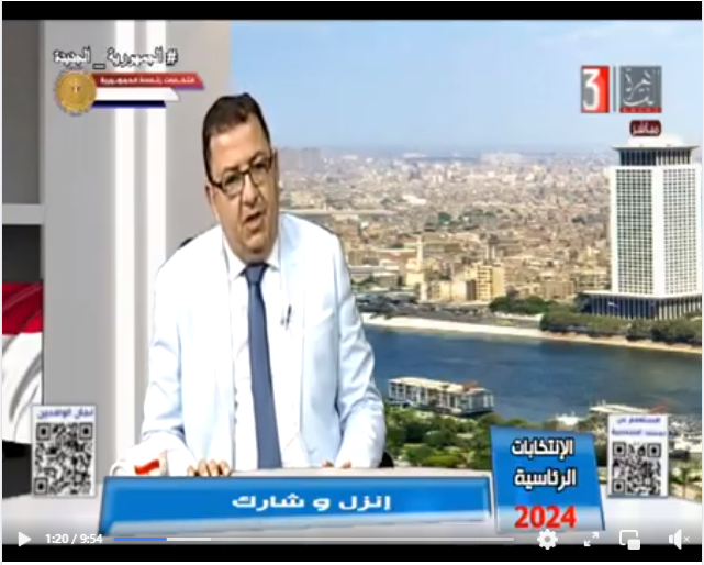 استعرض الدكتور دويب حسين صابر عميد الكلية في برنامج صباح القاهرة استعدادات الدولة لإجراء الاستحقاق الدستوري الأهم في الدولة، وإجراءات محافظة وجامعة أسيوط لتسهيل المشاركة والحث على النزول للتصويت بكثافة.