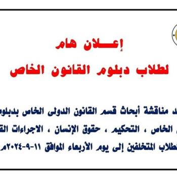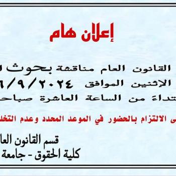 ناقشت الكلية الرسالة العلنية لنيل درجة الماجستير فى القانون بعنوان :